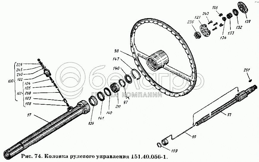 Каталог запасных частей к технике: ХТЗ Т-150К. Колонка рулевого управления 151.40.056-1