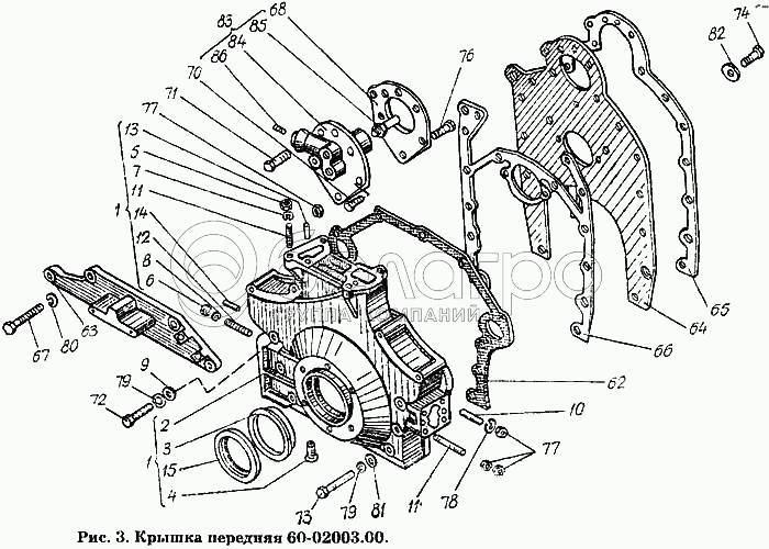 Каталог запасных частей к технике: ХТЗ Т-150К. Крышка передняя 60-02003.00