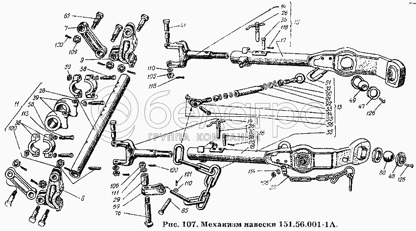 Каталог запасных частей к технике: ХТЗ Т-150К. Механизм навески 151.56.001-1А