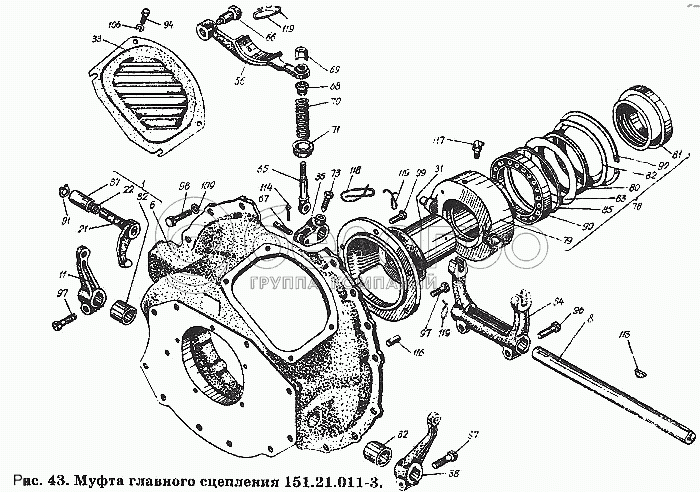 Каталог запасных частей к технике: ХТЗ Т-150К. Муфта главного сцепления 151.21.011-3