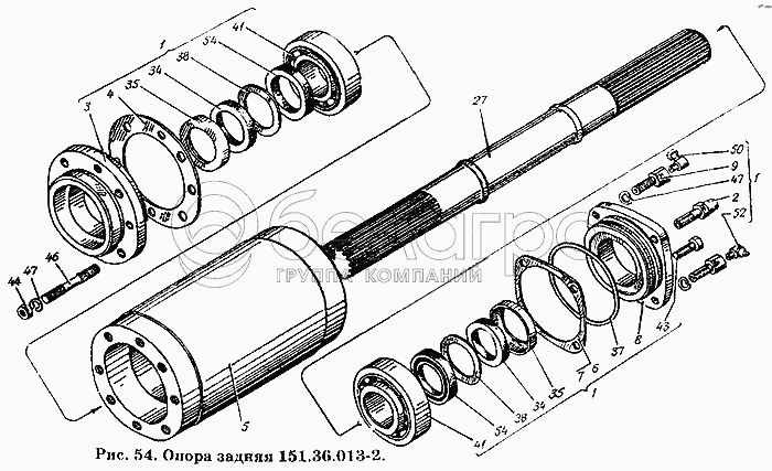 Каталог запасных частей к технике: ХТЗ Т-150К. Опора задняя 151.36.013-2