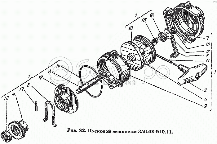 Каталог запасных частей к технике: ХТЗ Т-150К. Пусковой механизм 350.03.010.11