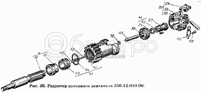 Каталог запасных частей к технике: ХТЗ Т-150К. Редуктор пускового двигателя 350.12.010.00