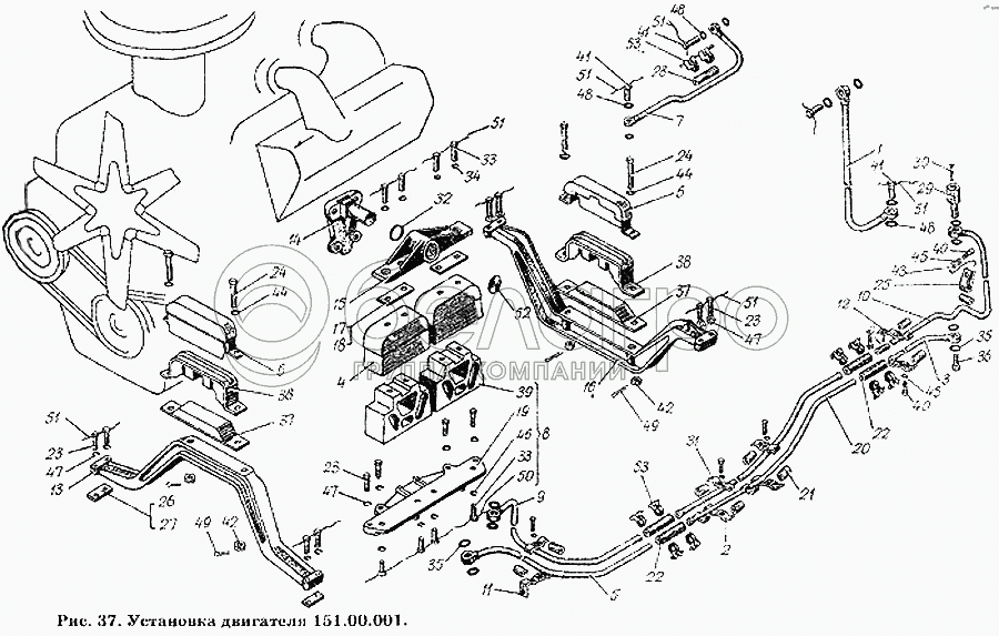 Каталог запасных частей к технике: ХТЗ Т-150К. Установка двигателя 151.00.001