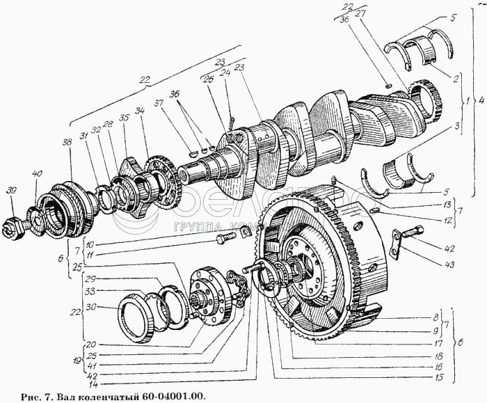 Каталог запасных частей к технике: ХТЗ Т-150К. Вал коленчатый 60-04001.00
