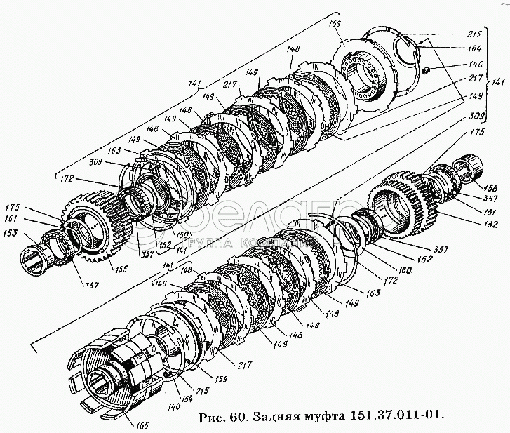 Каталог запасных частей к технике: ХТЗ Т-150К. Задняя муфта 151.37.011