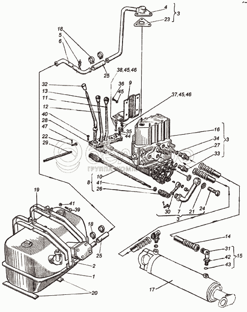 Каталог запасных частей к технике: ХТЗ Т-150К (2004). Гидросистема навесного устройства