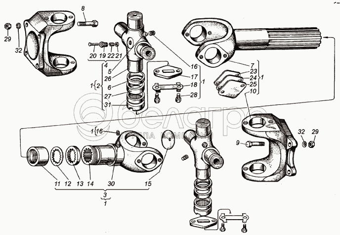 Каталог запасных частей к технике: ХТЗ Т-150К (2004). Передача карданная мостов