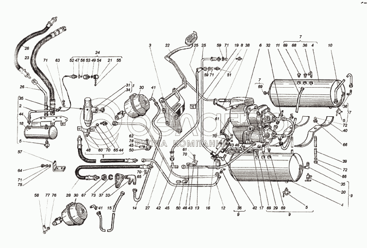 Каталог запасных частей к технике: ХТЗ Т-150К (2004). Пневмосистема