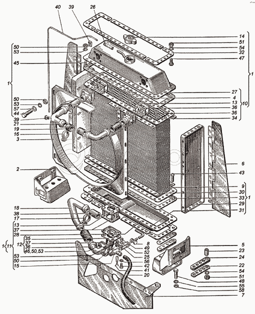 Каталог запасных частей к технике: ХТЗ Т-150К (2004). Система охлаждения двигателя