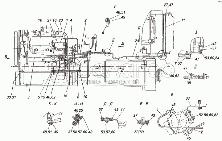 Каталог запасных частей к технике: ХТЗ Т-150К (2004). Установка двигателя