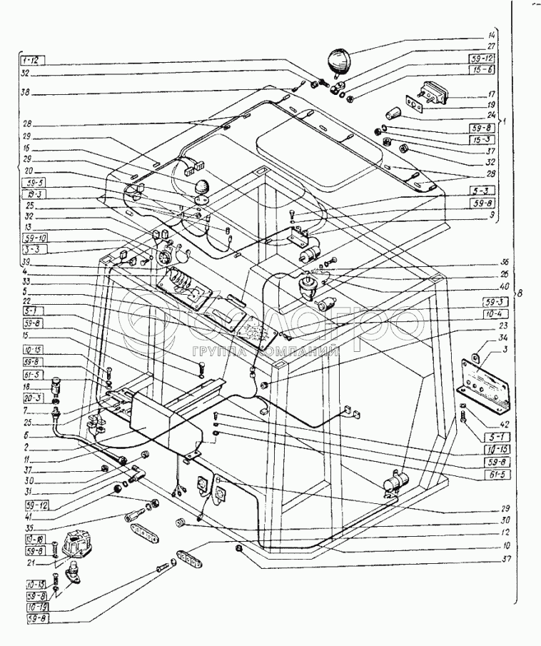 Каталог запасных частей к технике: ХТЗ Т-151К-08. Электрооборудование кабины
