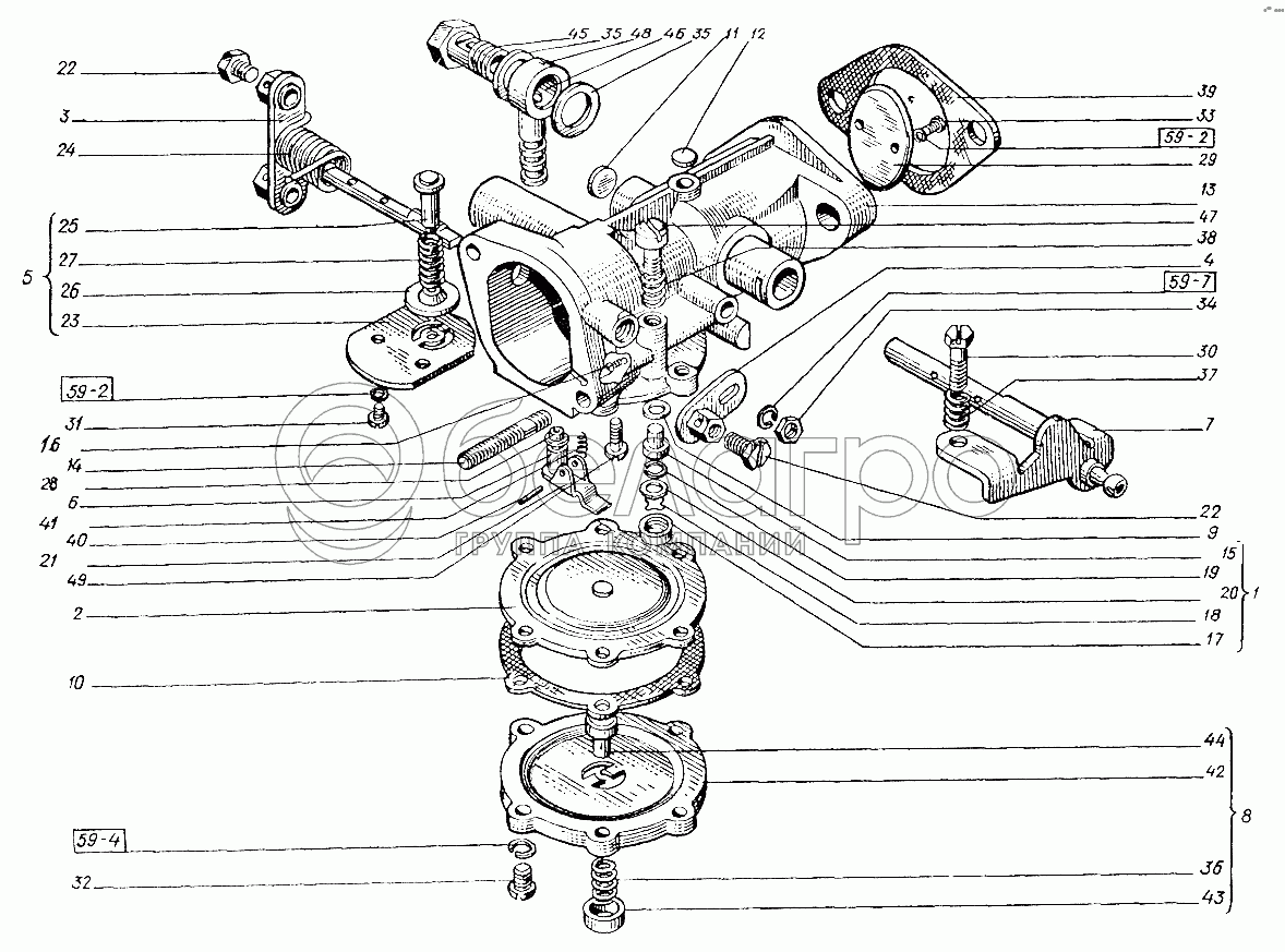 Каталог запасных частей к технике: ХТЗ Т-151К-08. Пусковой двигатель. Карбюратор