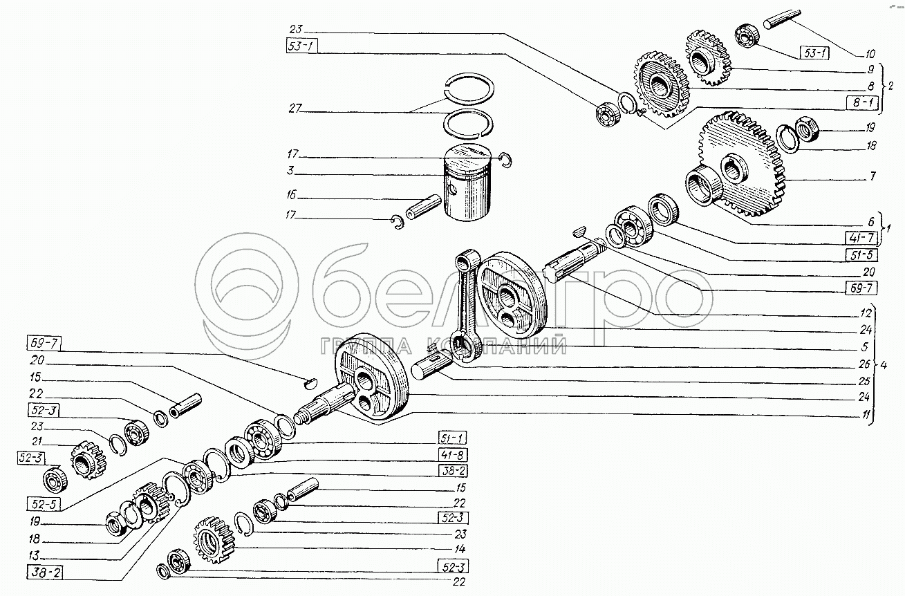 Каталог запасных частей к технике: ХТЗ Т-151К-08. Пусковой двигатель. Кривошипно-шатунный механизм