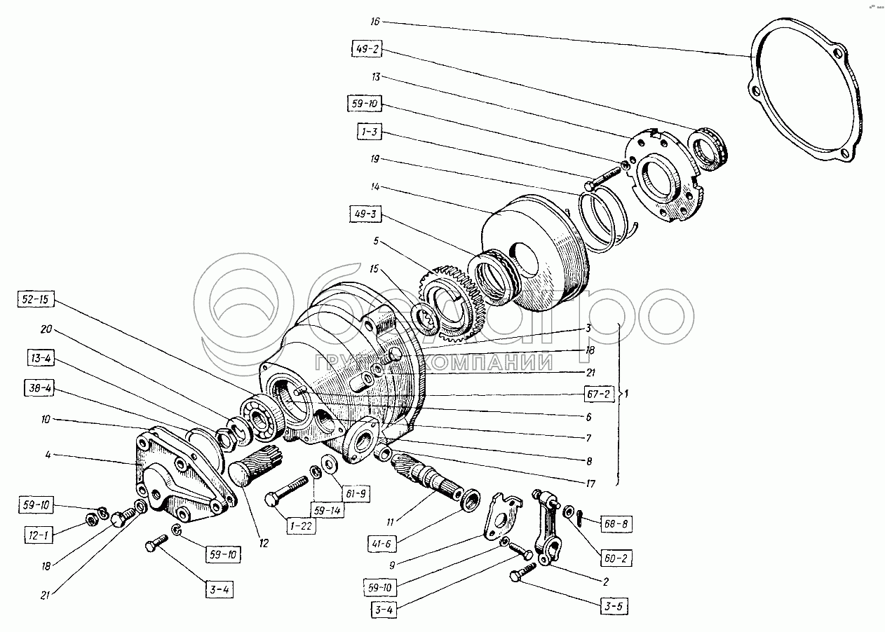 Каталог запасных частей к технике: ХТЗ Т-151К-08. Пусковой двигатель. Редуктор пускового двигателя