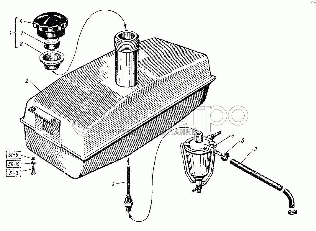Каталог запасных частей к технике: ХТЗ Т-151К-08. Система подогрева двигателя. Бачок топливный