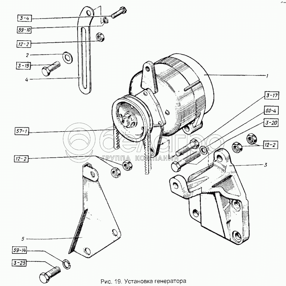 Каталог запасных частей к технике: ХТЗ Т-151К-08. Установка генератора