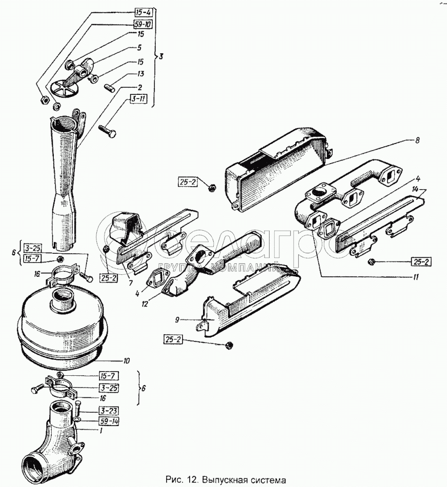 Каталог запасных частей к технике: ХТЗ Т-151К-08. Выпускная система