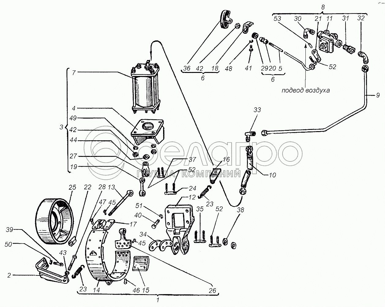 Каталог запасных частей к технике: ХТЗ Т-151К. Привод управления стояночным тормозом