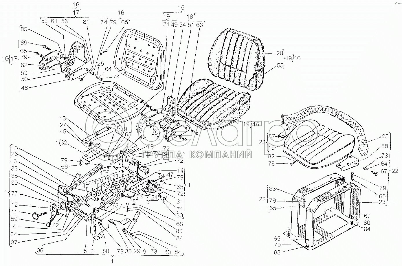 Каталог запасных частей к технике: ХТЗ Т-151К. Сиденье