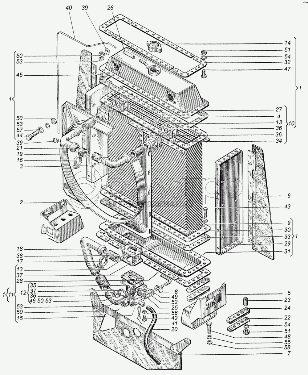 Каталог запасных частей к технике: ХТЗ Т-151К. Система охлаждения двигателя