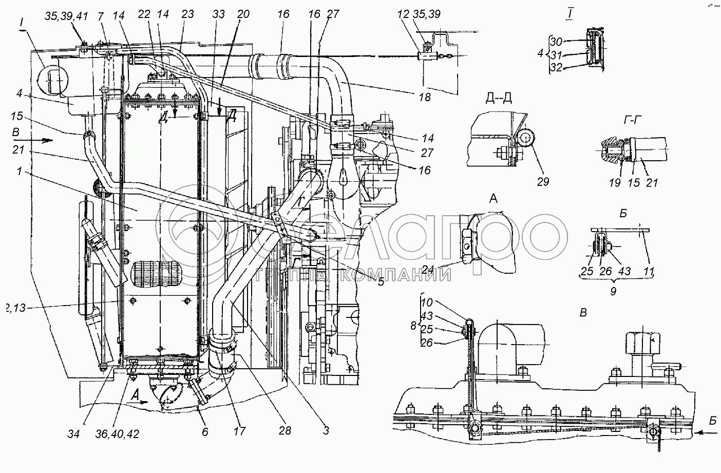 Каталог запасных частей к технике: ХТЗ Т-151К. Система охлаждения двигателя