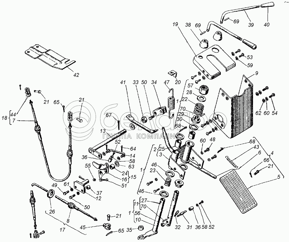 Каталог запасных частей к технике: ХТЗ Т-151К. Управление подачей топлива и коробкой передач