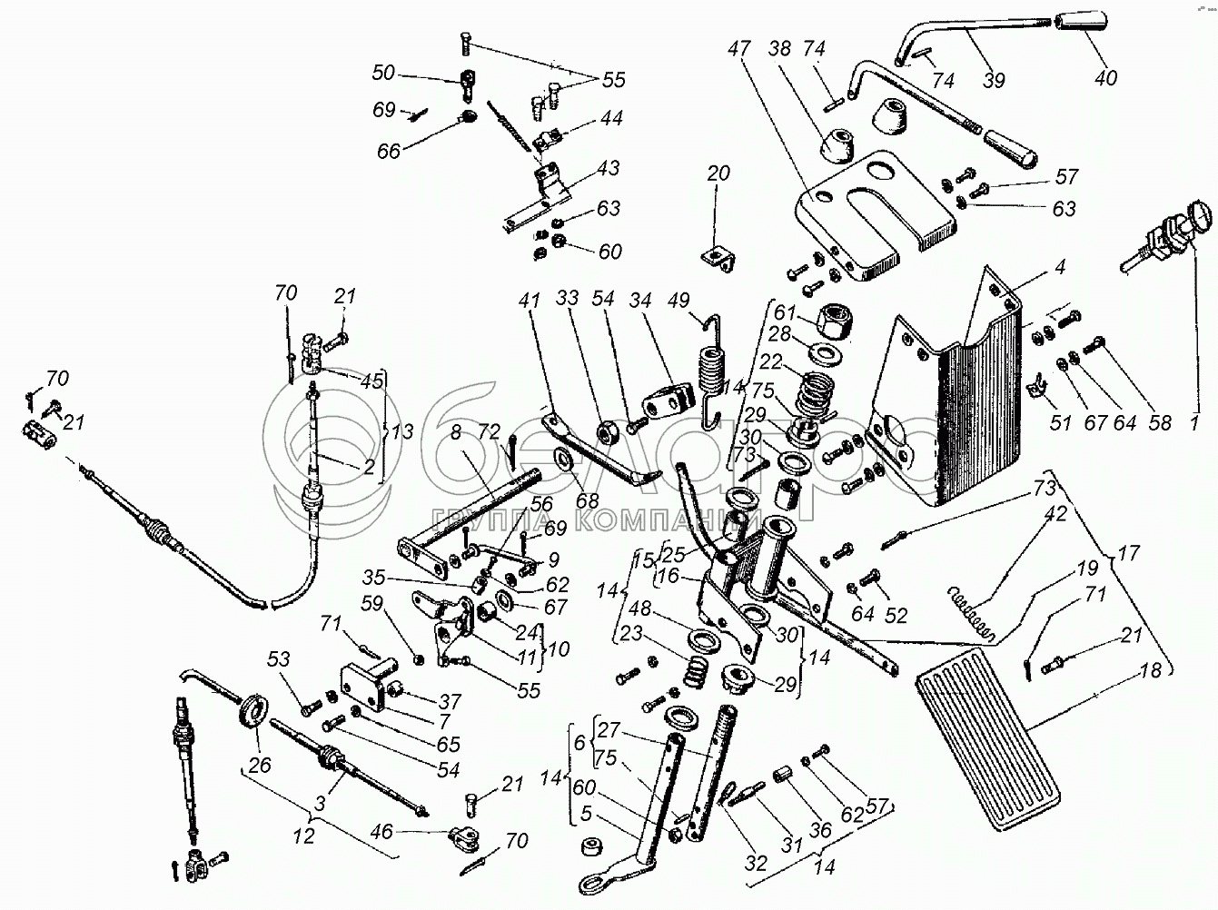 Каталог запасных частей к технике: ХТЗ Т-151К. Управление подачей топлива и коробкой передач