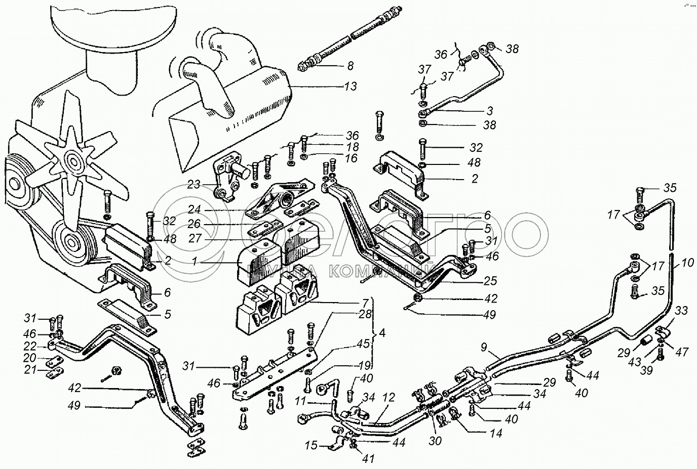 Каталог запасных частей к технике: ХТЗ Т-151К. Установка двигателя