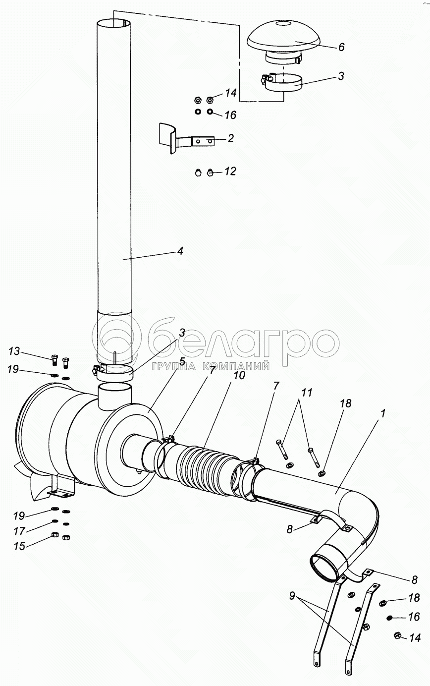 Каталог запасных частей к технике: ХТЗ Т-151К. Установка воздухоочистителя