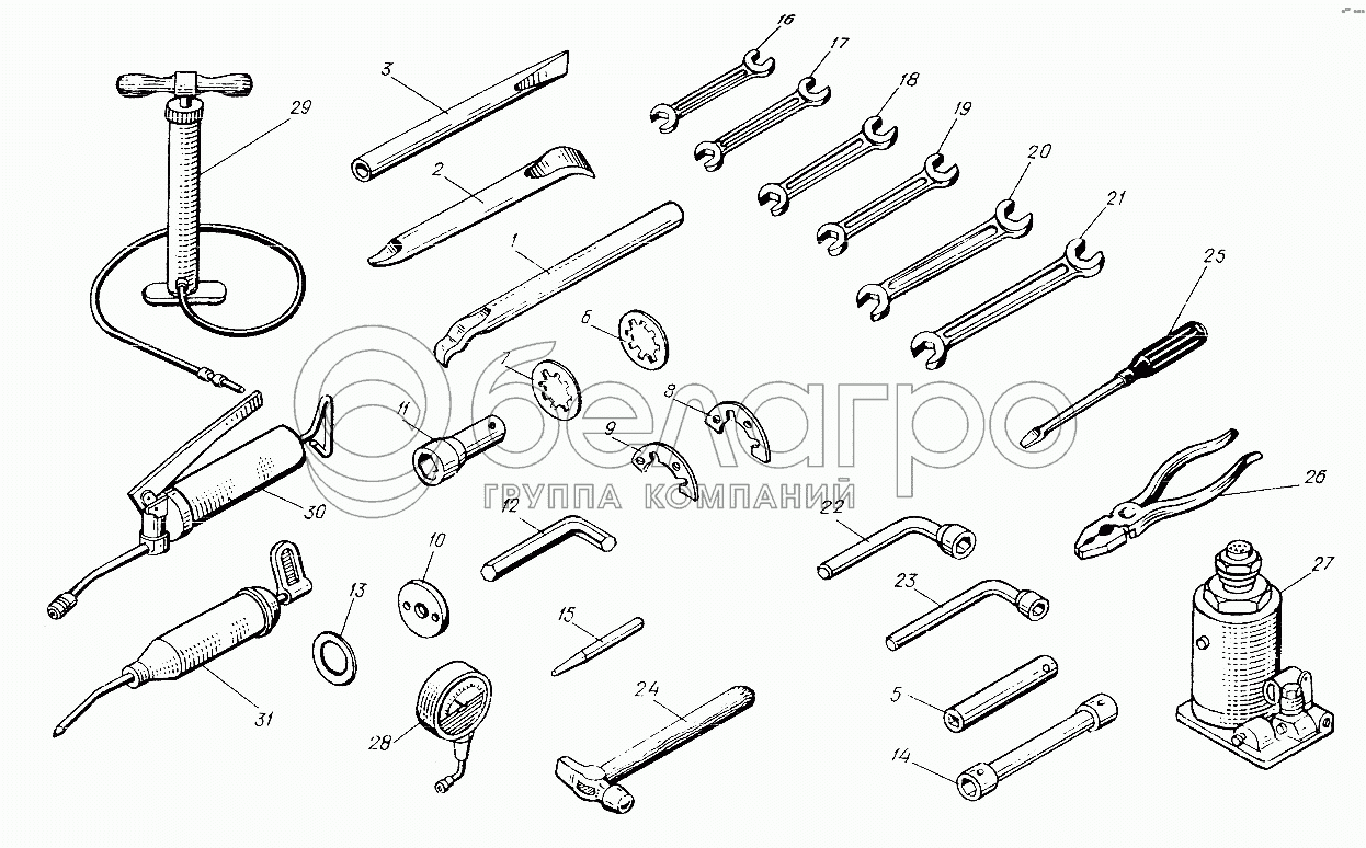 Каталог запасных частей к технике: ХТЗ Т-25Ф. Комплект ЗИП одиночный 25Ф.49.001