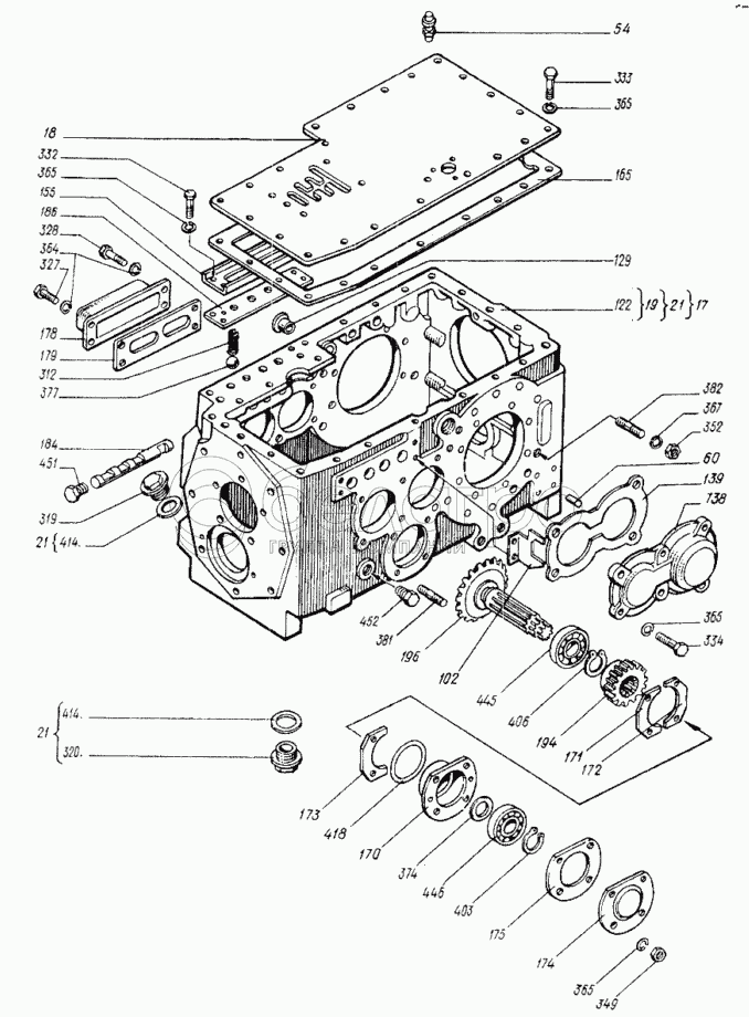 Каталог запасных частей к технике: ХТЗ Т-25Ф. Коробка передач (блокировка передач) 25Ф.37.010