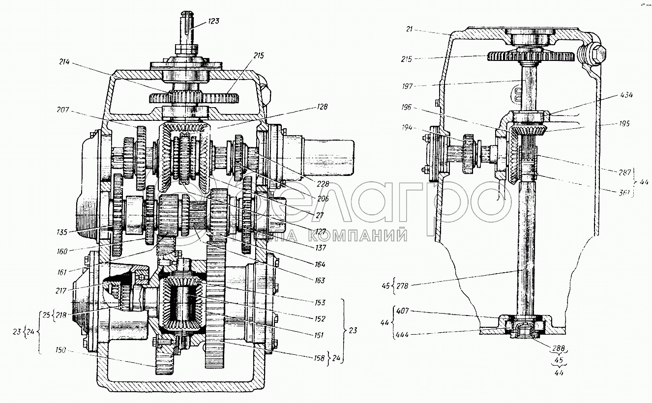 Каталог запасных частей к технике: ХТЗ Т-25Ф. Коробка передач (установка шестерен) 25Ф.37.010