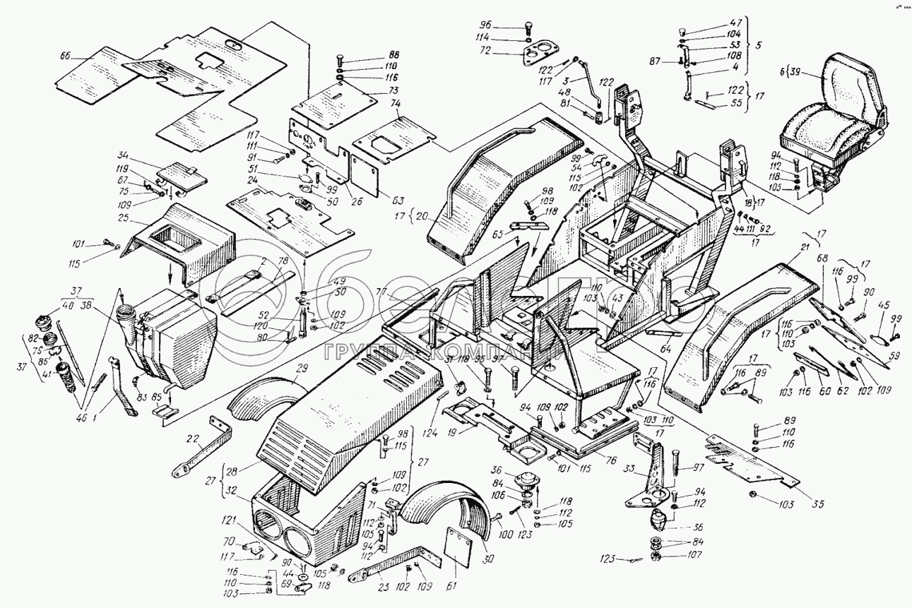 Каталог запасных частей к технике: ХТЗ Т-25Ф. Облицовка 25ФМ.47.001