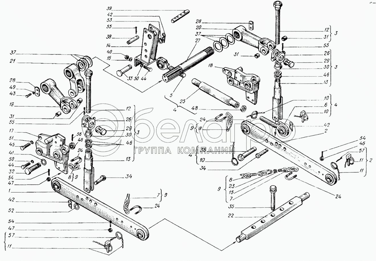 Каталог запасных частей к технике: ХТЗ Т-25Ф. Устройство навесное заднее 25Ф.56.001