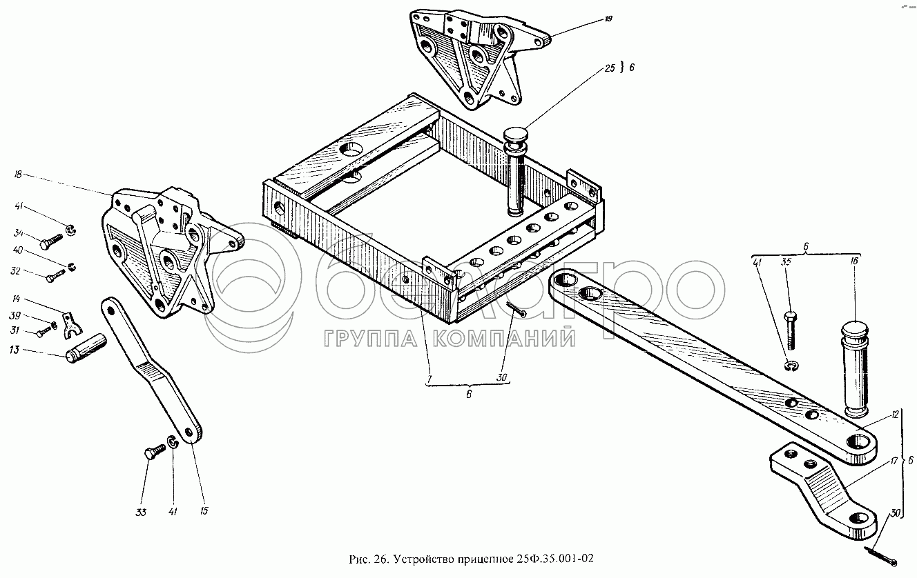 Каталог запасных частей к технике: ХТЗ Т-25Ф. Устройство прицепное 25Ф.35.001-02