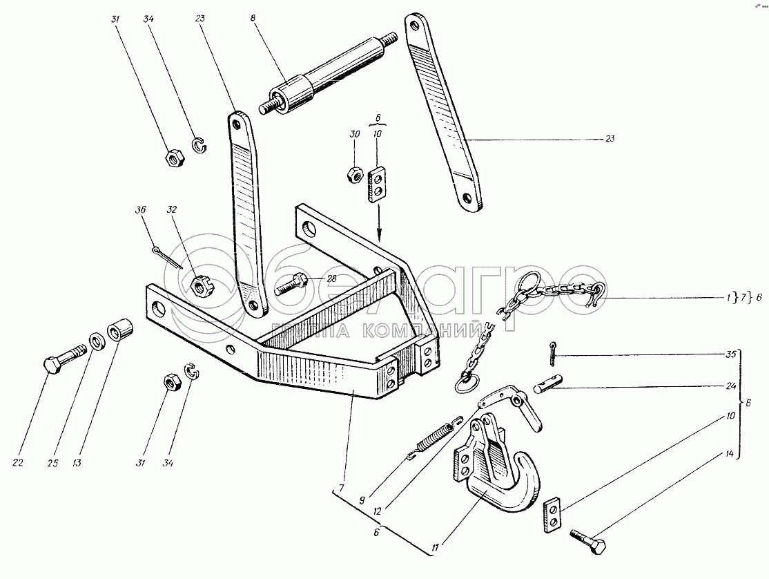 Каталог запасных частей к технике: ХТЗ Т-25Ф. Устройство прицепное 25ФМ.35.001