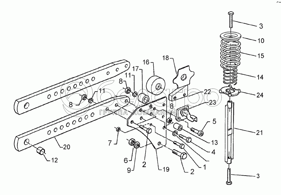Каталог запасных частей к технике: Lemken EurOpal 7X. Trip device with roller 30x80-170-V/D20