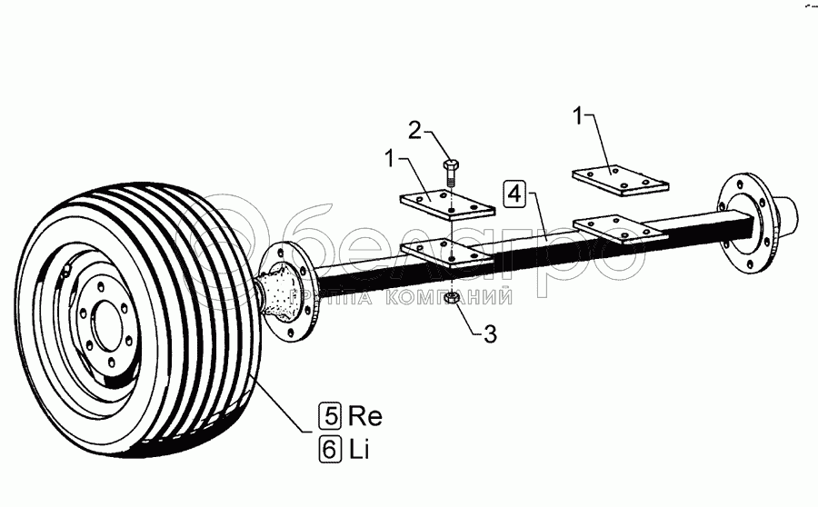 Каталог запасных частей к технике: Lemken Gigant 1000. Running axle 550/45-22.5 2400