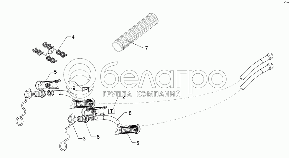 Каталог запасных частей к технике: Lemken Karat 9/600 KA. 6755831 Hose-assembly