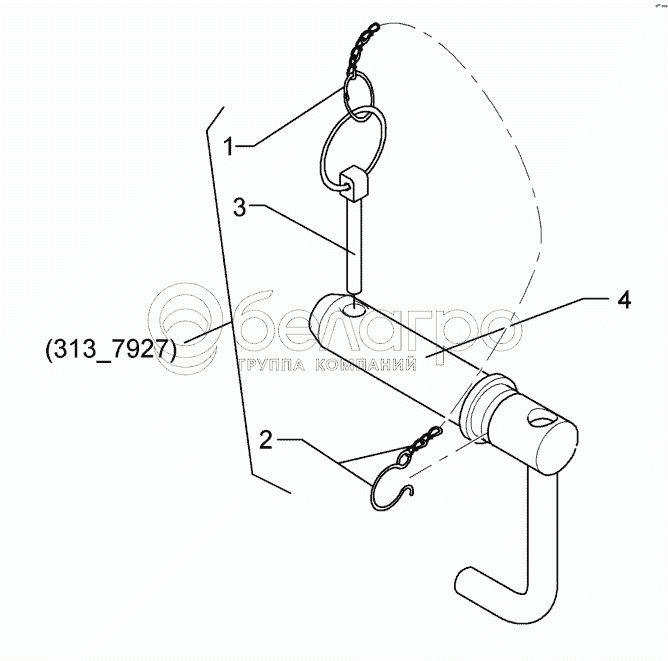 Каталог запасных частей к технике: Lemken Kristall 9/500KA. 3137927 Top link pin with chain