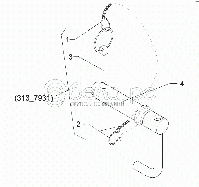 Каталог запасных частей к технике: Lemken Kristall 9/500KA. 3137929 Top link pin with chain