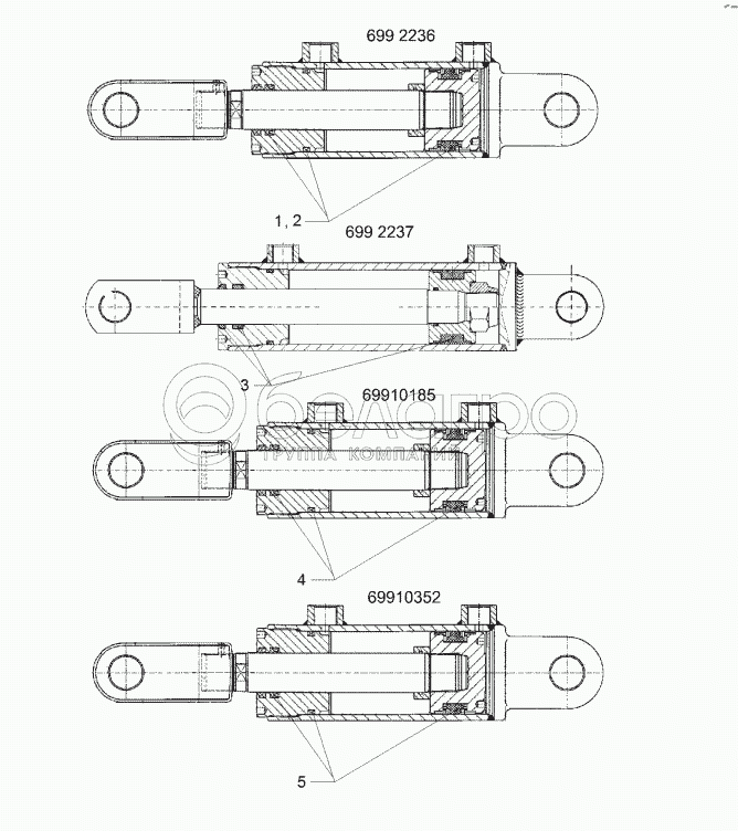 Каталог запасных частей к технике: Lemken Kristall 9/500KA. 5752323 Hydraulic ram
