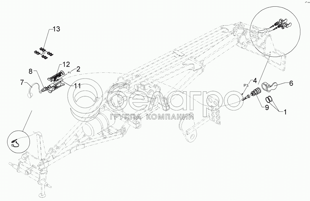 Каталог запасных частей к технике: Lemken Kristall 9/500KA. 67510080 HY-pipe lifting device