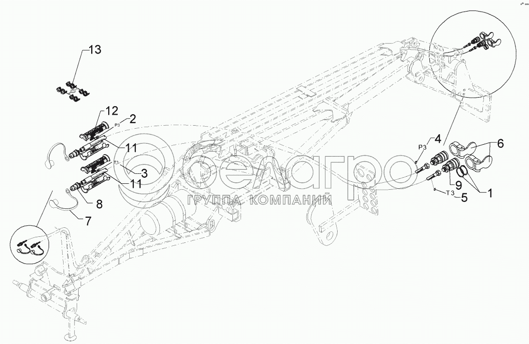 Каталог запасных частей к технике: Lemken Kristall 9/500KA. 67510082 HY-pipe assembly