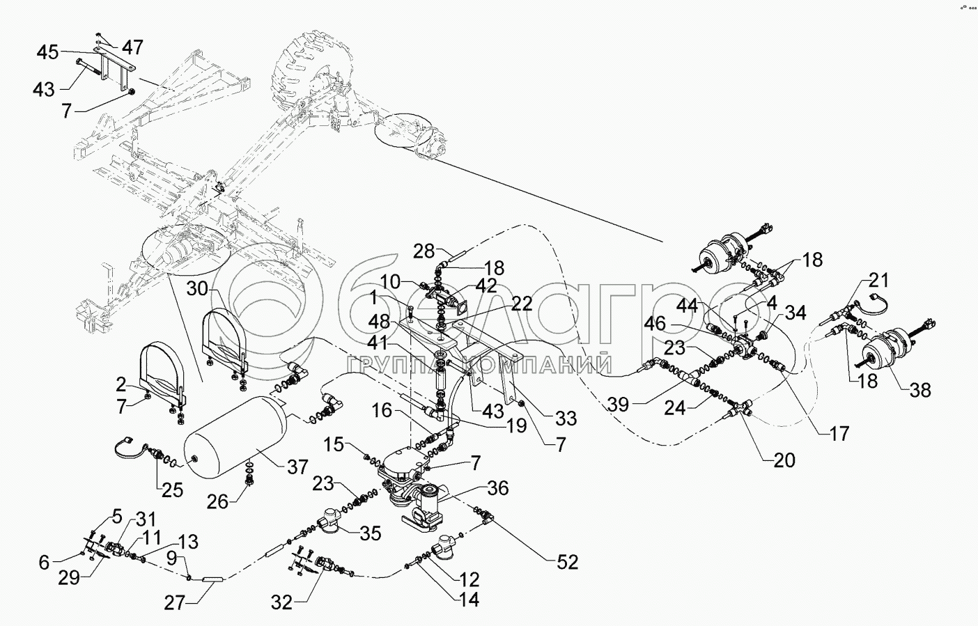 Каталог запасных частей к технике: Lemken Kristall 9/500KA. 67710008 Compressed air brake