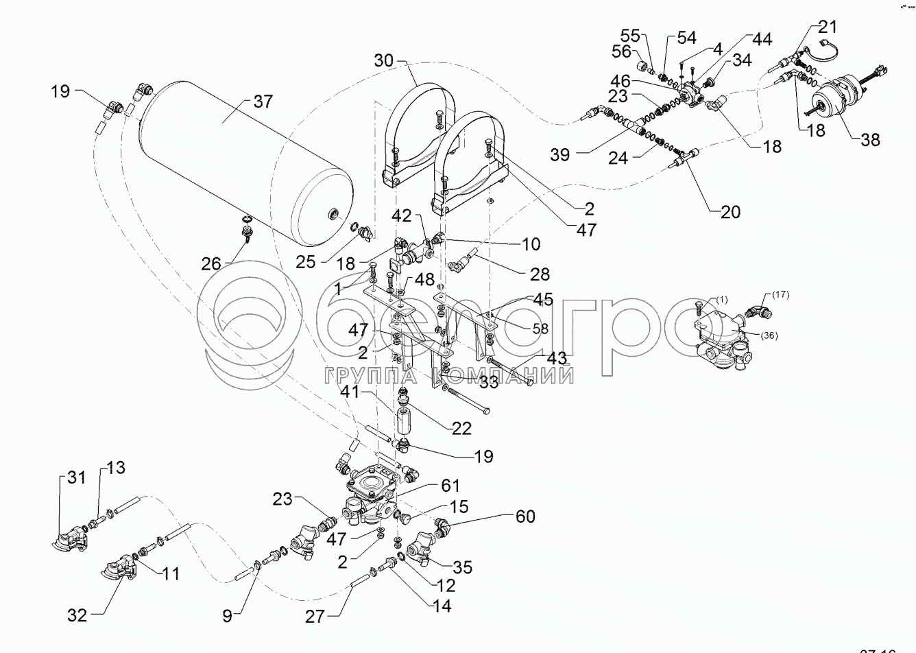 Каталог запасных частей к технике: Lemken Kristall 9/500KA. 67710009 Compressed-air brake