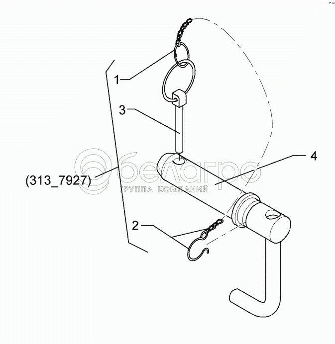 Каталог запасных частей к технике: Lemken Kristall 9/600KA. 3137927 Top link pin with chain
