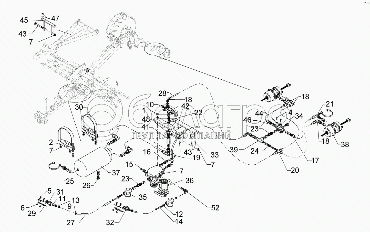 Каталог запасных частей к технике: Lemken Kristall 9/600KA. 67710007 Compressed air brake