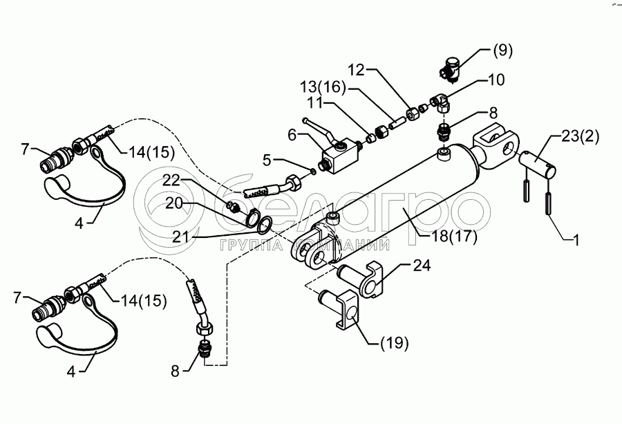Каталог запасных частей к технике: Lemken Quarz 7/250. Hydraulic assembly DA 80x245-AHG-LT